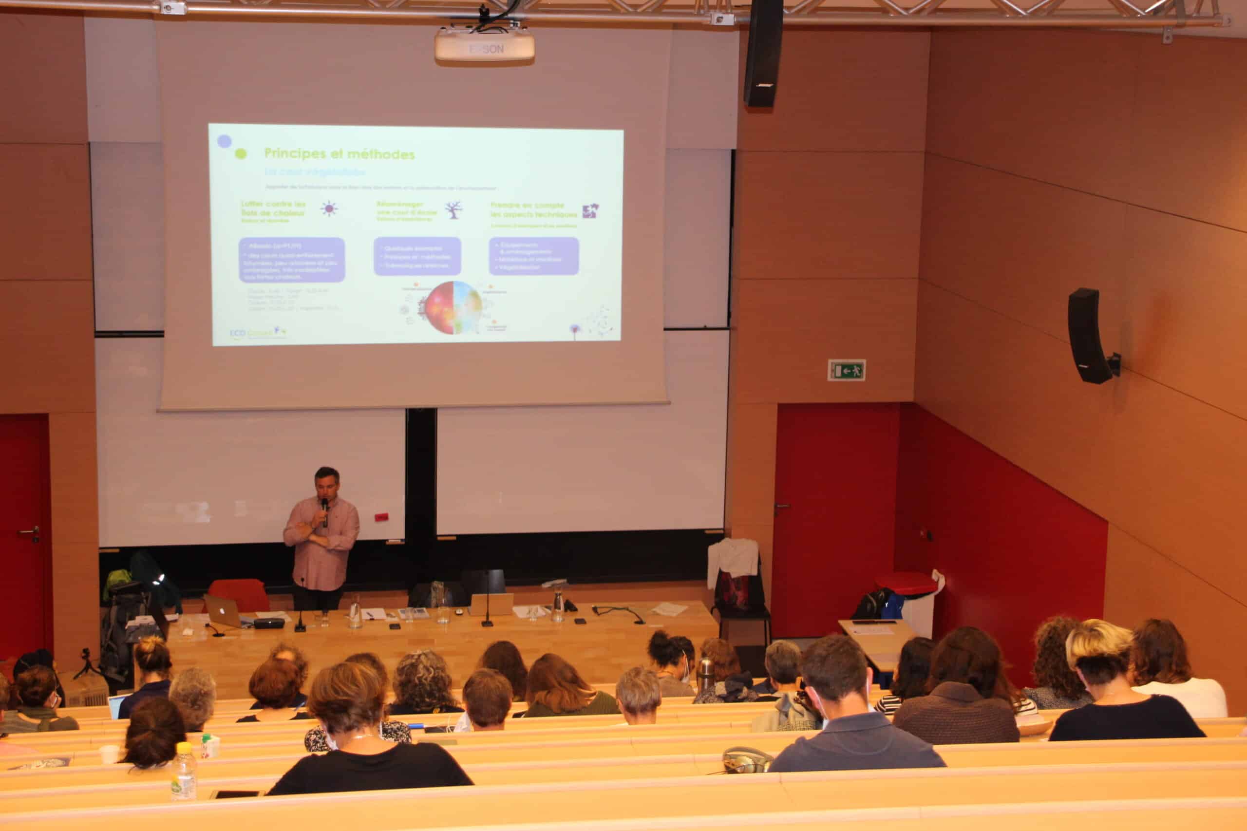 La première édition du colloque « La Cour qui Sème » consacré aux cours végétalisées s’est tenu les 16 et 20 octobre 2021. L’événement a réuni une cinquantaine de visiteurs : enseignants d’écoles maternelles et élémentaires, professeurs des écoles, animateurs, parents d’élèves, responsables périscolaires, correspondants de quartier, paysagistes. Tous ont pu bénéficier de deux jours riches en apprentissages.