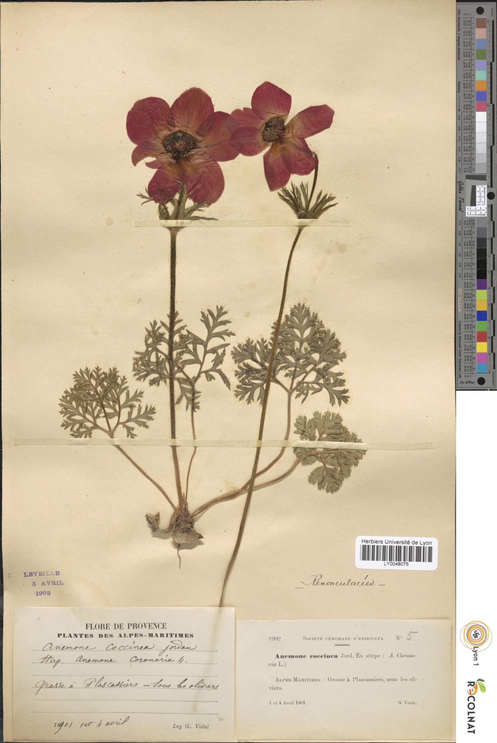 Herbier de l’Université de Lyon. Anémone coccina jordan. Famille des Renonculaceae.