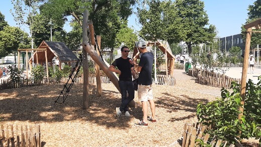 « Je me suis dit qu’il était important d’avoir du changement dans la cour, plus de jeux… que mon fils joue à autre chose qu’au foot, qu’il puisse se poser ! Mon fils aîné a participé aussi à l’atelier pour les enfants et a beaucoup aimé. »