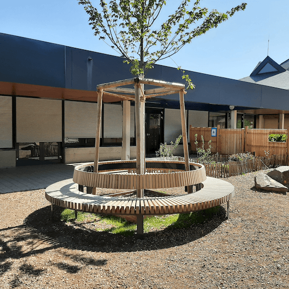 Banc circulaire installé dans la cour de l’école Stoskopf